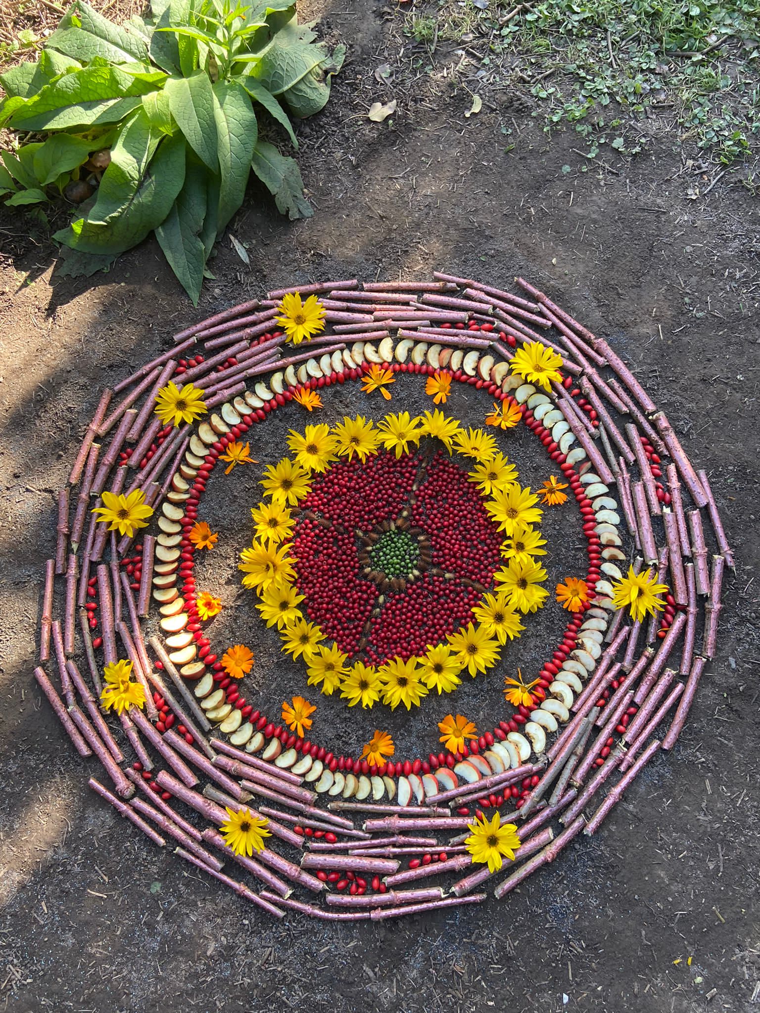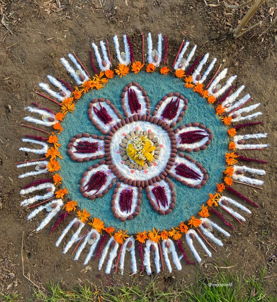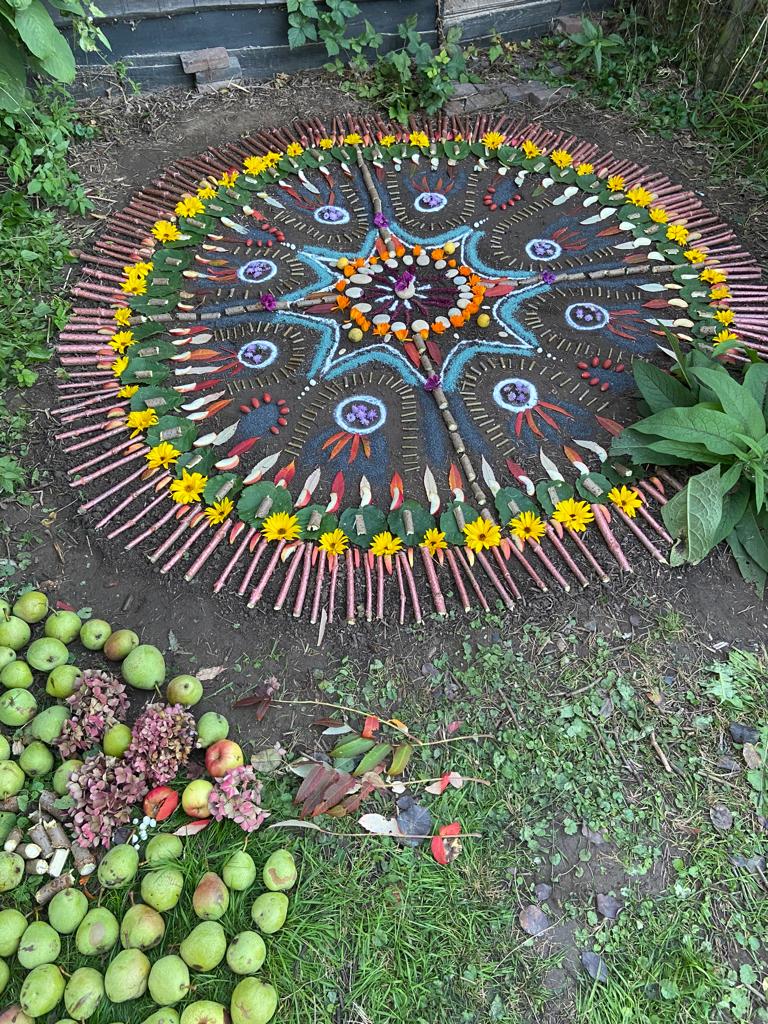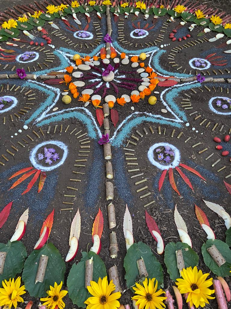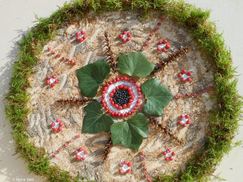 Buiten kunnen grotere mandala's en natuurbouwwerken worden gemaakt op een bijzondere plek voor een bijzondere gelegenheid.