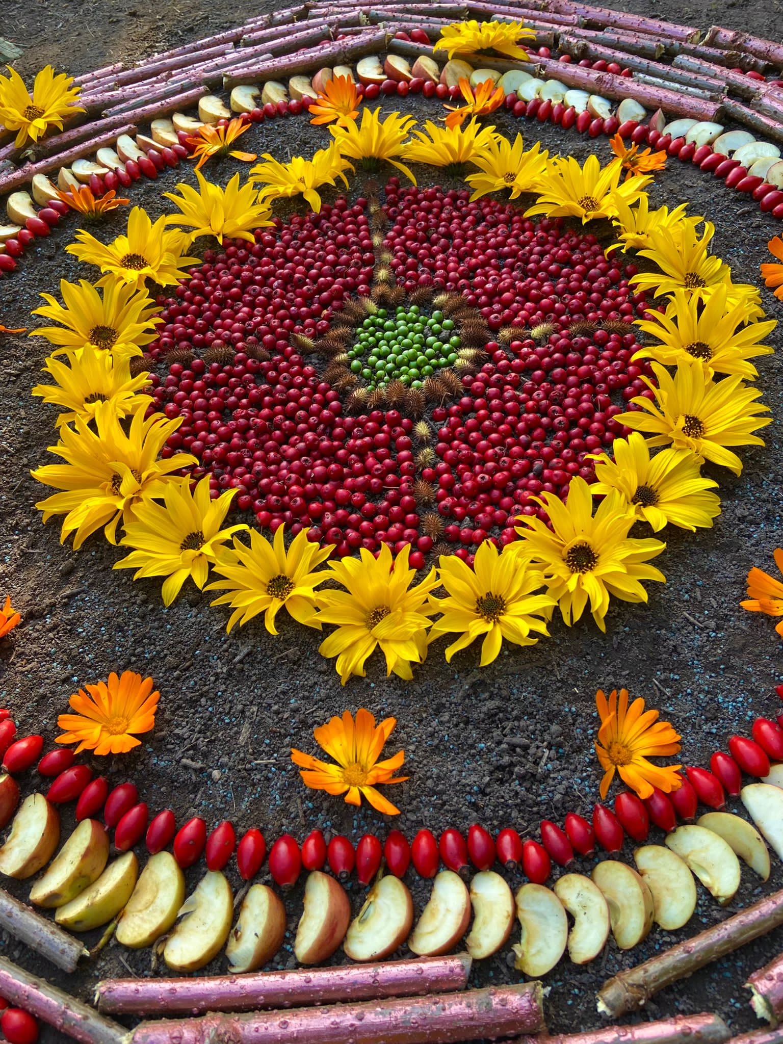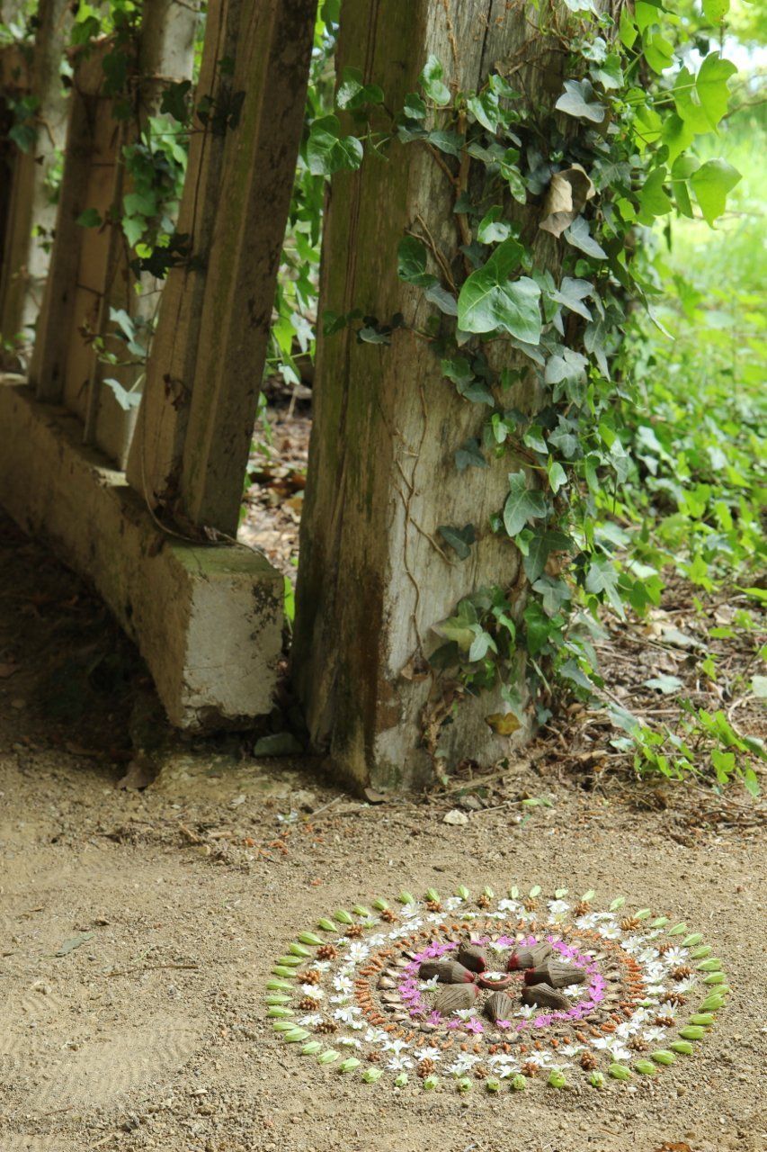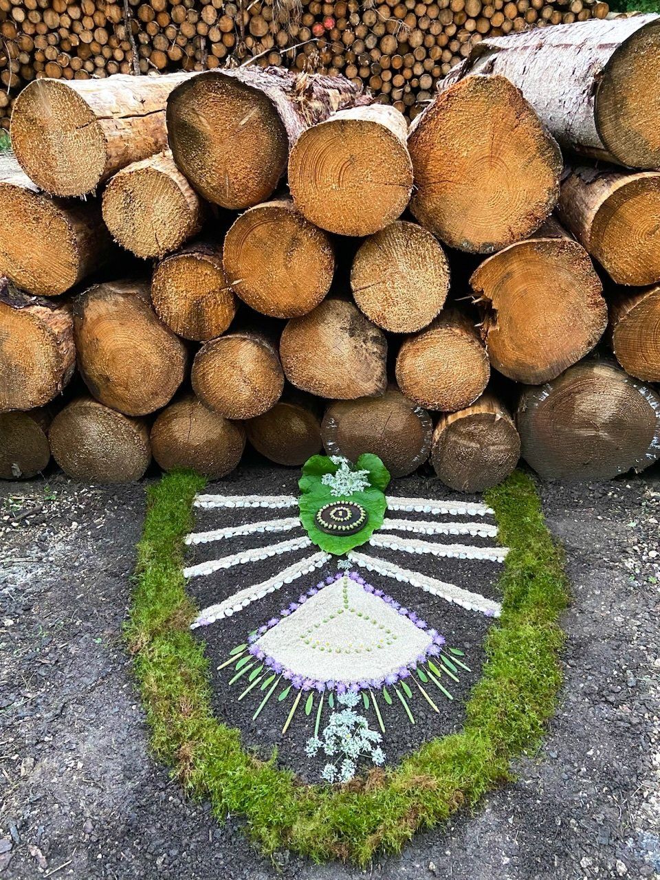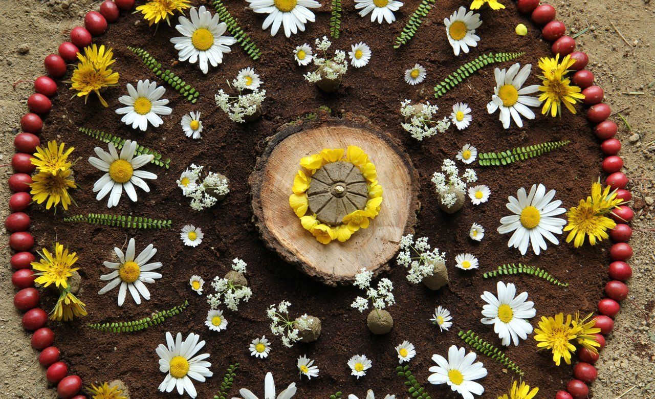 Buiten kunnen grotere mandala's en natuurbouwwerken worden gemaakt op een bijzondere plek voor een bijzondere gelegenheid.