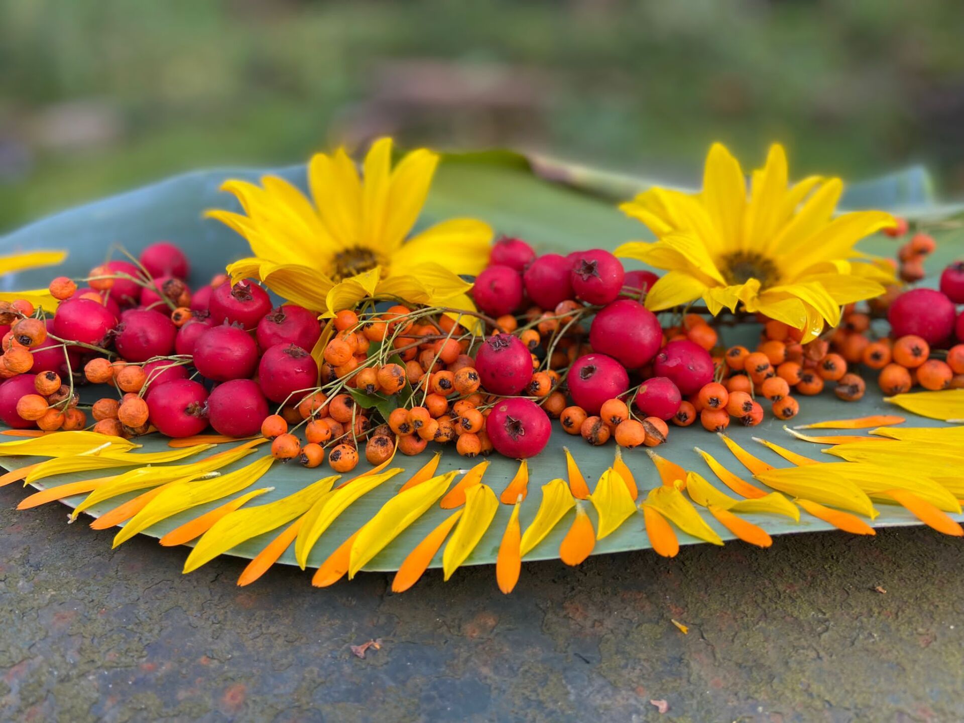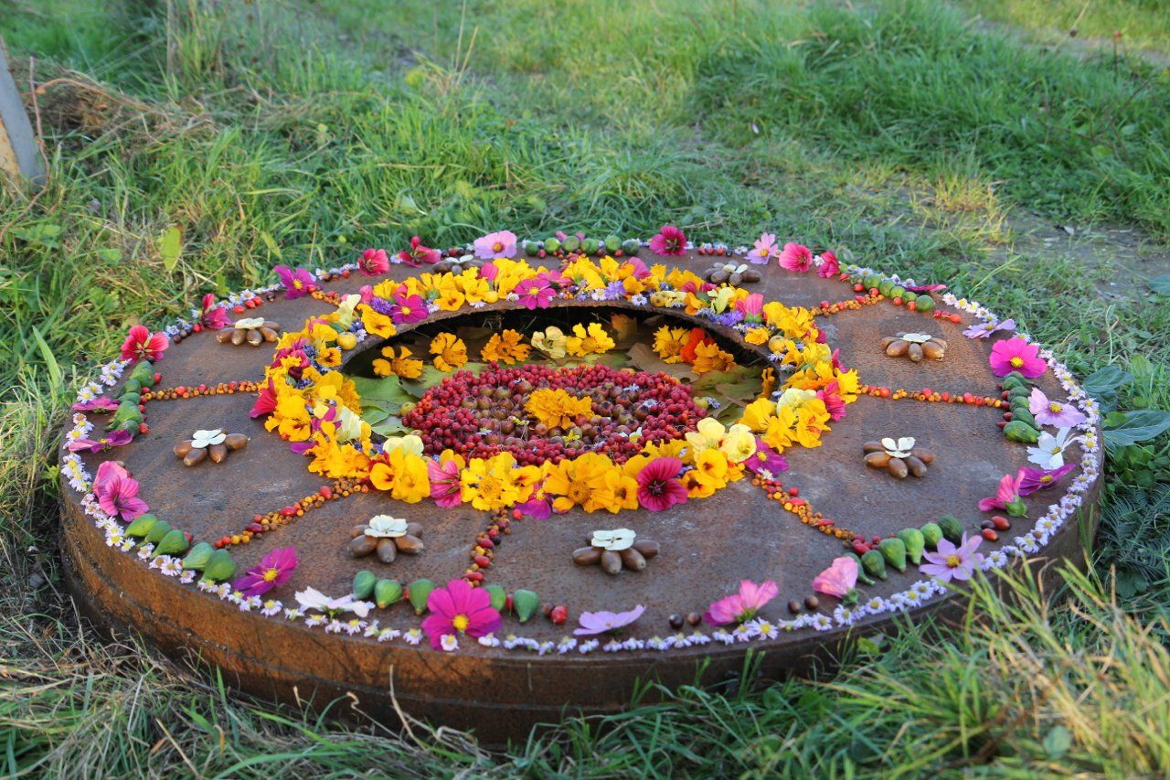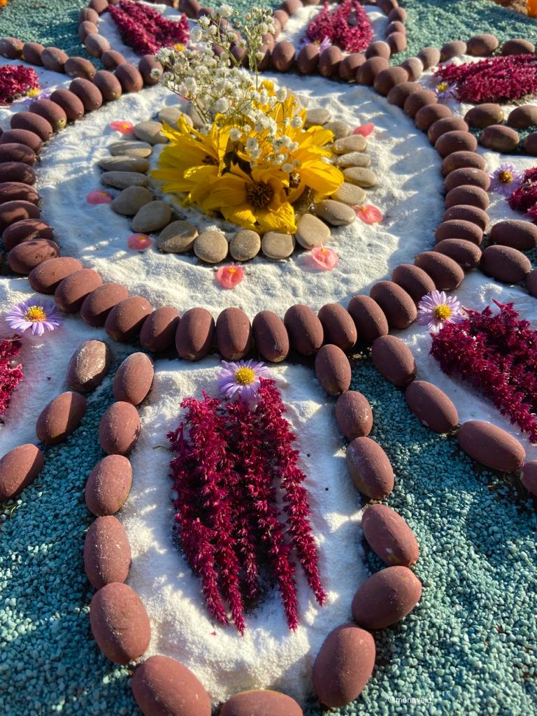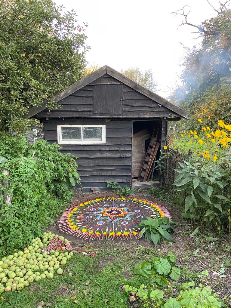 Buiten kunnen grotere mandala's en natuurbouwwerken worden gemaakt op een bijzondere plek voor een bijzondere gelegenheid.